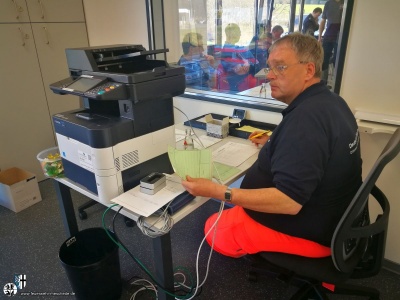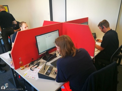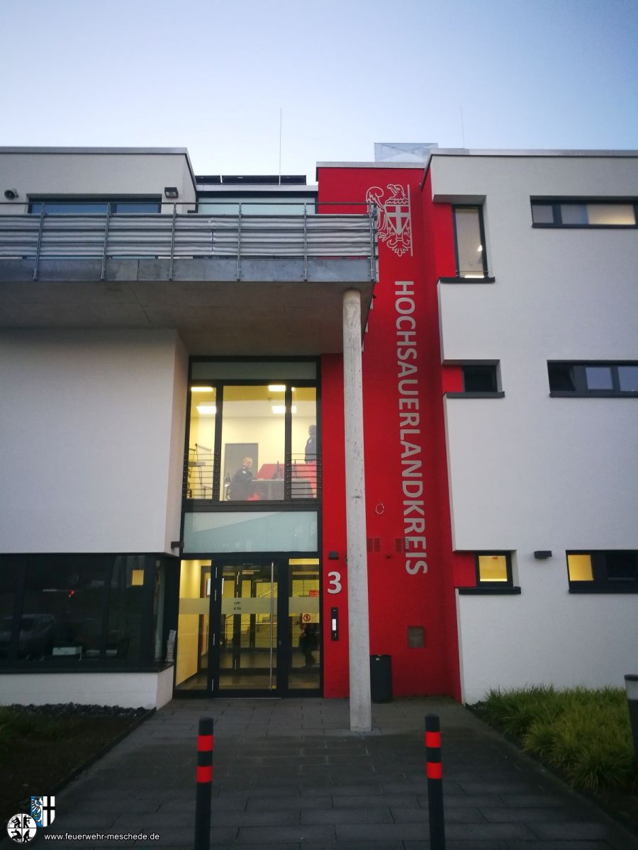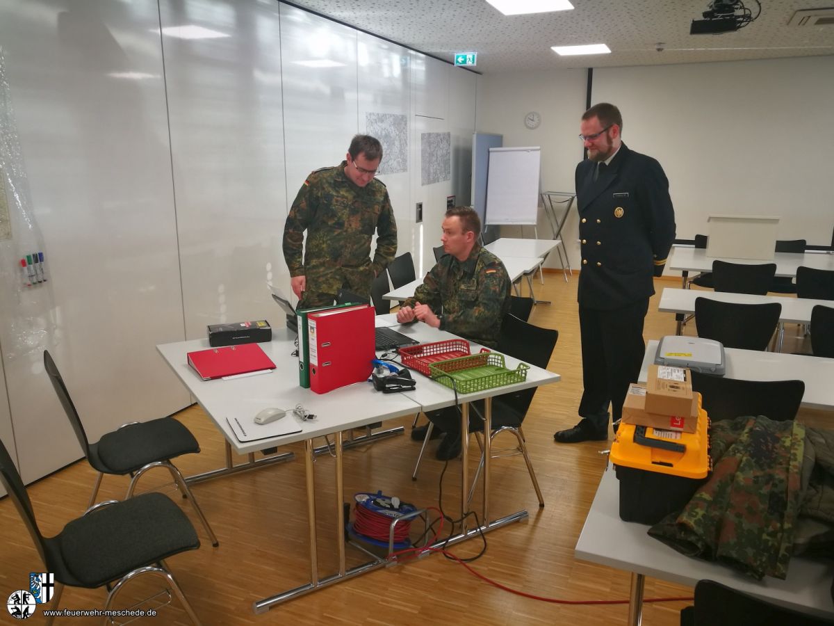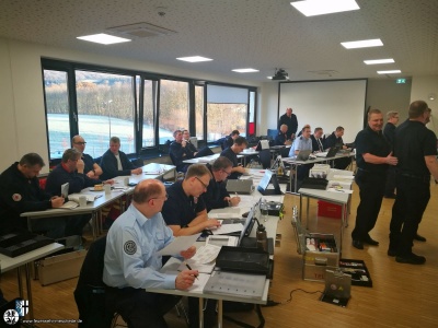 Zweimal im Jahr üben die Einsatzkräfte eine Großschadenslage im Hochsauerlandkreis. Hierbei arbeiten die Feuerwehr, das THW, das DRK, die DLRG, die Bundeswehr, das PSU - Team HSK, die Polizei und die Kreisverwaltung des Hochsauerlandkreises zusammen. Diese Übungen fanden bisher im Kreishaus in der Steinstraße statt - nun zum ersten Mal im "Zentrum für Feuerschutz und Rettungswesen" (ZFR) in Meschede-Enste.Neben Wehrleiter Hubertus Schemme und weiteren Einsatzkräften aus Meschede waren auch wir von der Funkgruppe vertreten. Wir nahmen wie immer unseren Dienst in der Fernmeldebetriebsstelle auf. Funk, Fax, Telefon, E-Mail und Dokumentation. Hierbei wurden wir unterstützt von zwei Kameraden des DRK-Ortsverein Meschede/Eslohe. Vielen Dank dafür! Eine gute Zusammenarbeit die schon viele Jahre besteht. Kurzzeitig mussten wir unsere Arbeit einstellen, weil ein Feueralarm die Räumung des Gebäudes erzwang.