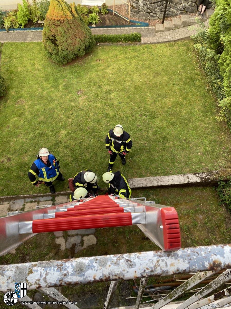 „Feuer im Wohngebäude, vermutlich Personen im Gebäude“ lautete das Einsatzstichwort für die Einsatzkräfte. Der Löschzug Freienohl und die Drehleiter des Löschzuges Meschede waren im Einsatz. Nachdem das erste Fahrzeug des Löschzuges Freienohl am Einsatzort eingetroffen war, bestätigte sich der Anfangsverdacht. Aus den Fenstern im Obergeschoss drang dichter Rauch, zwei Personen riefen lautstark um Hilfe. Sie mussten umgehend betreut werden. Das Gebäude konnten sie nicht mehr eigenständig verlassen. Der Rauch hatte sich bereits im kompletten Treppenraum ausgebreitet.