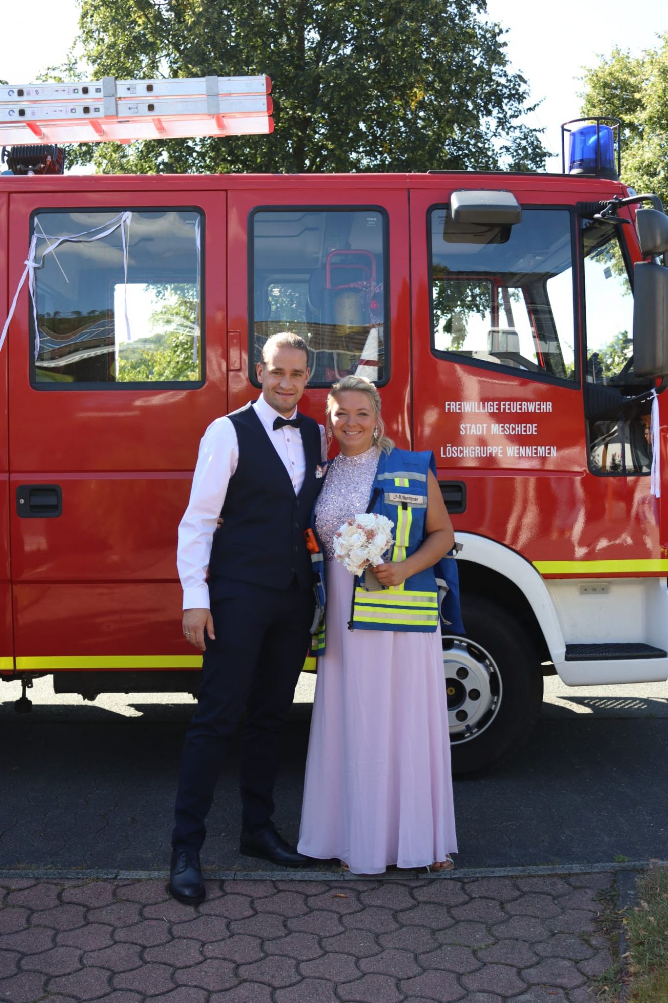 Wennemen. Bereits am Freitag, den 29. August 2025, gaben sich Löschgruppenführer Marius Wrede und seine Frau Scarlett Wrede (geb. Schäfer) im Standesamt des Rathauses in Meschede das Jawort. Beide leben in Stockhausen und sind seit vielen Jahren fest im örtlichen Vereinsleben
