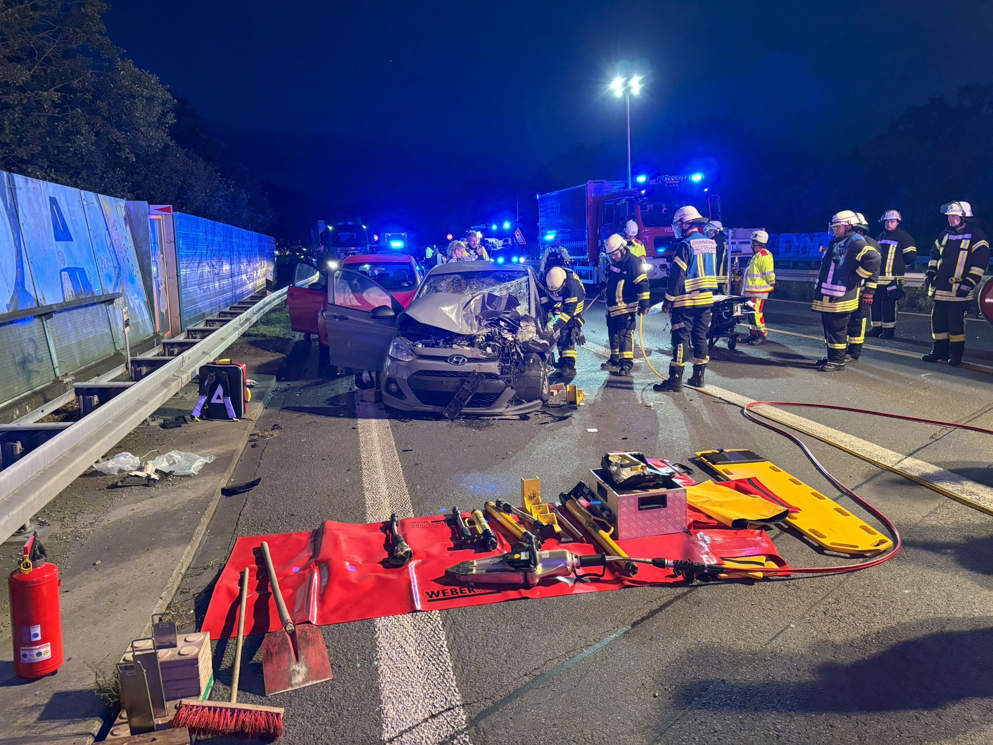 Bereits auf der Anfahrt erhielten die Einsatzkräfte die Information, dass eine Person in einem PKW eingeklemmt und verletzt sei. Die Anfahrt gestaltete sich schwierig, da die Rettungsgasse von vielen Verkehrsteilnehmern nicht oder nur unzureichend gebildet wurde.
