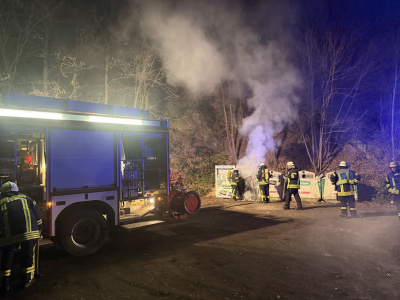 brennender Altkleidercontainer; der Container wurde geöffnet und der Inhalt durch die Feuerwehr abgelöscht